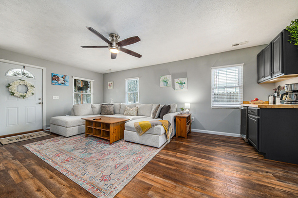 We focus on the main spaces! We focus on what sells homes: Kitchen, baths, living room and primary bedroom. This way we can hyper focus on those spaces and make them stand out. Having every room in a home staged is unnecessary and can get quite expensive and cumbersome.